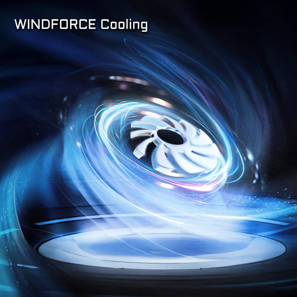 Le GAMING A16 est doté de la technologie de refroidissement WINDFORCE éprouvée, combinant un système à double ventilateur et la technologie 3D VortX pour une circulation d'air optimale. La technologie Icy Touch permet une utilisation confortable même lorsque le boîtier est froid. La ventilation périphérique contribue également à maintenir le processeur à une température optimale, garantissant des performances maximales même en cas de forte sollicitation.