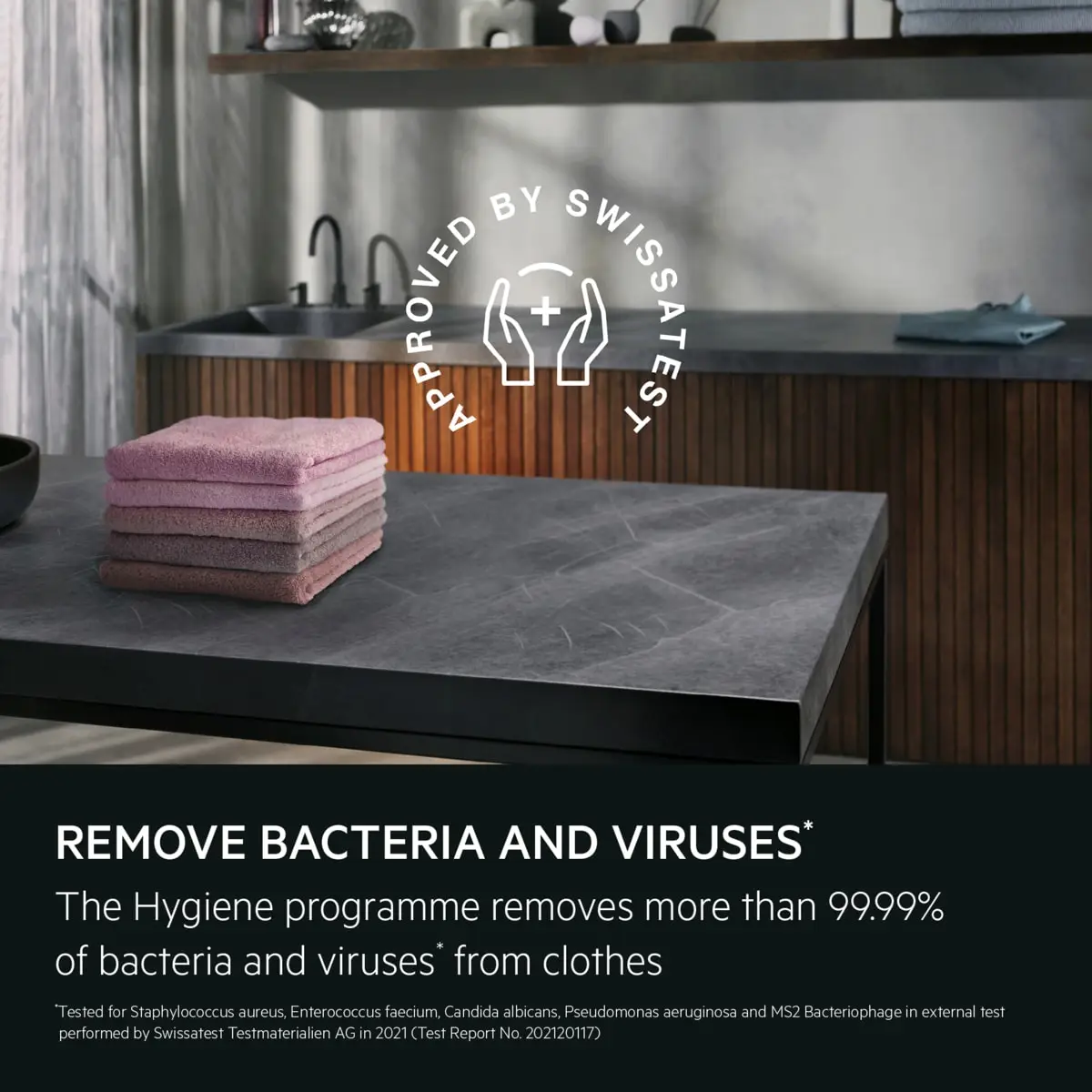 Le programme d'hygiène certifié Swissatest élimine 99,9 % des bactéries et des virus*