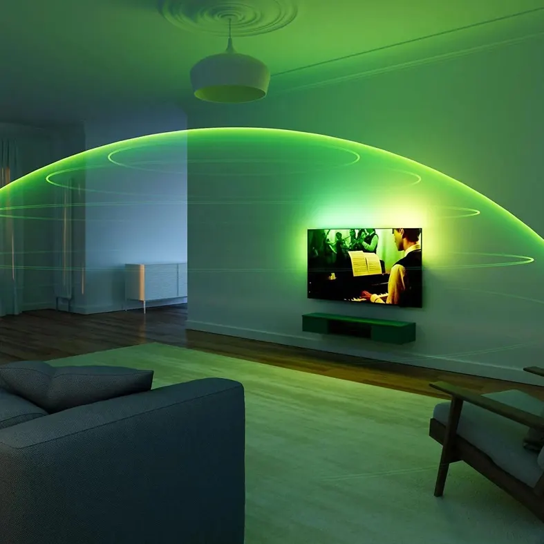 L'éclairage Ambilight sur trois côtés du téléviseur LED PHILIPS 55PUS8550/12 prolonge votre expérience visuelle au-delà de l'écran. Des effets lumineux colorés sont projetés sur le mur derrière le téléviseur et s'adaptent en temps réel à l'image. Ceci crée une ambiance particulière qui agrandit visuellement l'image et réduit simultanément la fatigue oculaire, notamment dans les scènes sombres ou les pièces obscures. De plus, différents modes, tels que le mode Jeu ou le mode Éclairage Lounge , sont disponibles pour vous permettre d'adapter l'ambiance lumineuse à vos besoins.